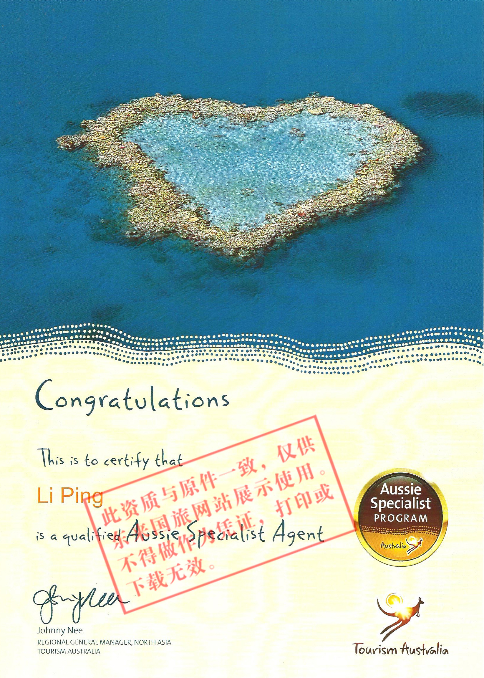(陈晓敏)新西兰旅游专家证书